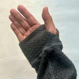 袖はサムホール仕様で、スリットの入った裾は後ろが長いクラシカルなディティール。