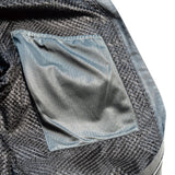 表のメッシュ素材に保温材になる異形断面中空ポリエステル起毛繊維を一体化させたメッシュフリース素材。その軽さと暖かさ、熱抜けの良さが特徴のポリエステル生地。