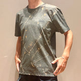 吸収性・速乾性に優れたプライムフレックスニット素材に1点1点手作業で特殊加工ペイントを施したTシャツ。