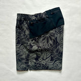 レトロ感漂うデットストックリーフプリントパターンをカラーアレンジしたショーツ。
