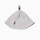 あたま全体を覆い、サウナでのダメージやのぼせを予防する。 頭頂部には持ち運びしやすいフック付き。